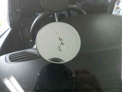 本日は日産キャラバンのフロントガラスリペアを紹介します。ギリギリ100円玉で隠れる位の大きさで、上方向に今にも伸びだしそうなキズでした。そのキズの中腹にもう1つ打点があり、ヒビの先端にレジンが届くか心配でした。しかし、バッチリできましたので、ご覧ください↓