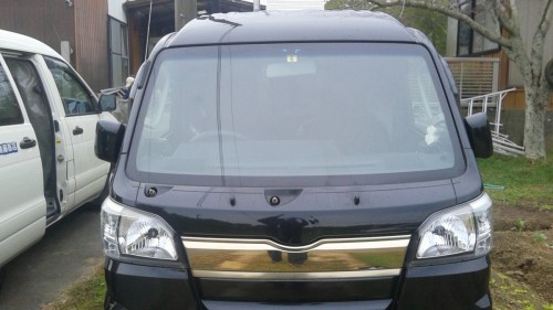 寒さに負けず、何とかガラス施工頑張ってます👊今回は、誰もが二度見してしまう熱反射フロントガラス「コートテクト」の施工です。