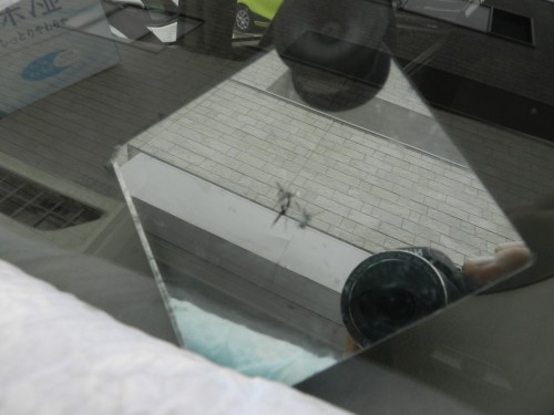 早良区のお客様で、高速道路走行中に「カーンとすごい音がした」そうです。打点が2つ有り、中でヒビが繋がっているタイプです。最初は2回に分けての施工になるかと思ったのですが、一つ目の施工で、レジンが浸透したので1回の施工で完了です。
