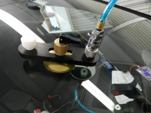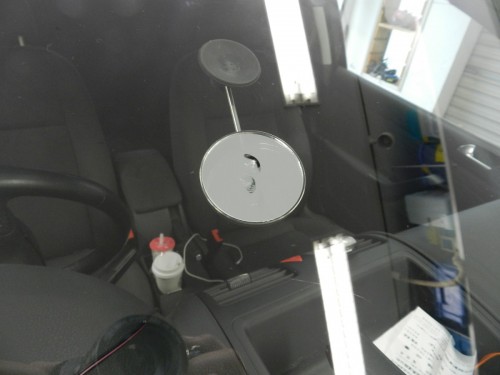 早速お車を持ち込んでいただき、フロントガラスリペア作業開始です。